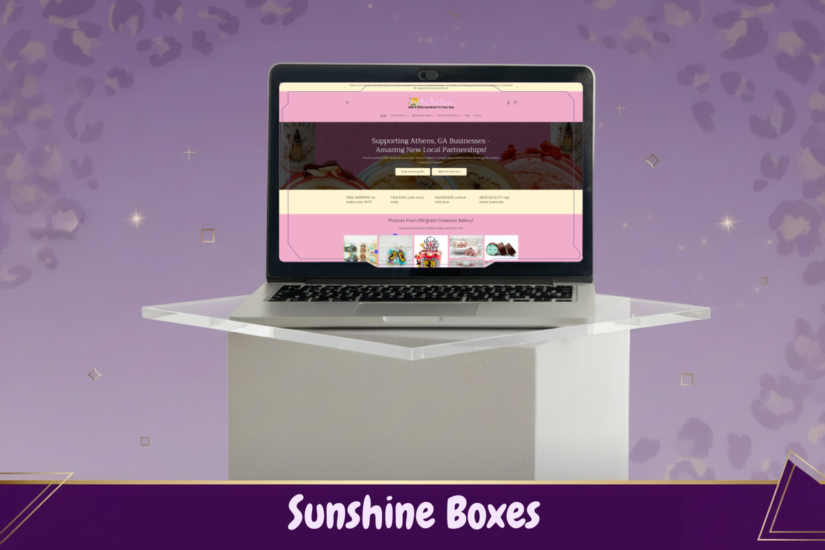 Sunshine Boxes needed a professional online store to showcase their custom edible sugar images for cakes and desserts. I designed a user-friendly Shopify website that highlights their existing pink and cream branding. The site makes it easy for customers to browse products, place custom orders, and learn about their partnership program supporting local Athens, GA businesses. The result is a beautiful, functional e-commerce store that makes online ordering simple and reflects the sweet, creative nature of their business.