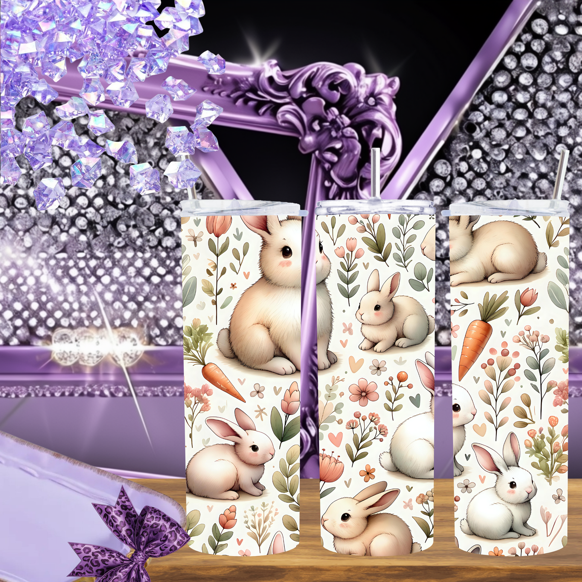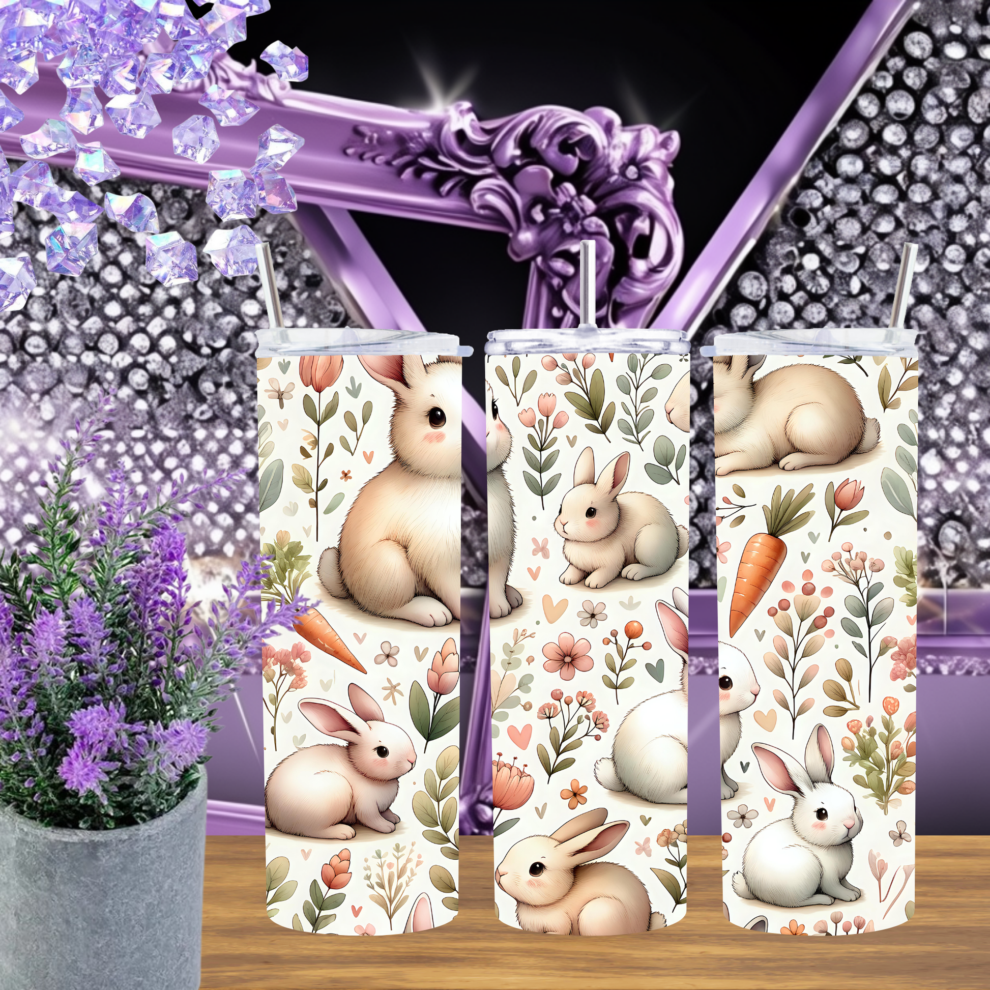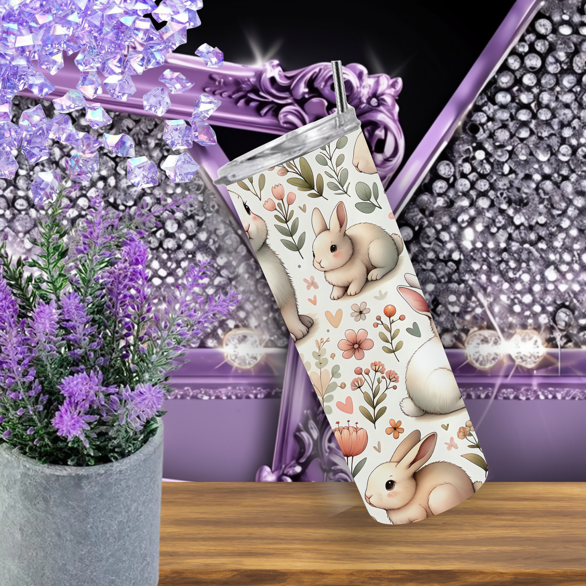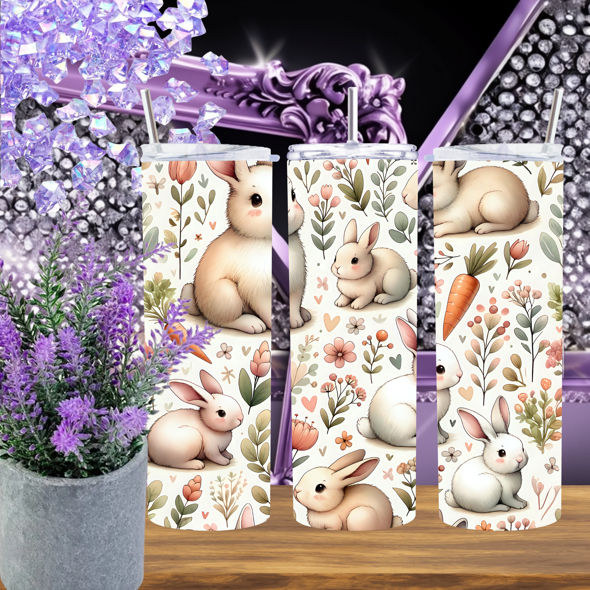 Sip into spring with this charming 20 oz skinny tumbler featuring a soft pastel bunny pattern surrounded by carrots, wildflowers, and hearts. It's a perfect gift for Easter, garden lovers, or anyone obsessed with cozy cottagecore vibes!