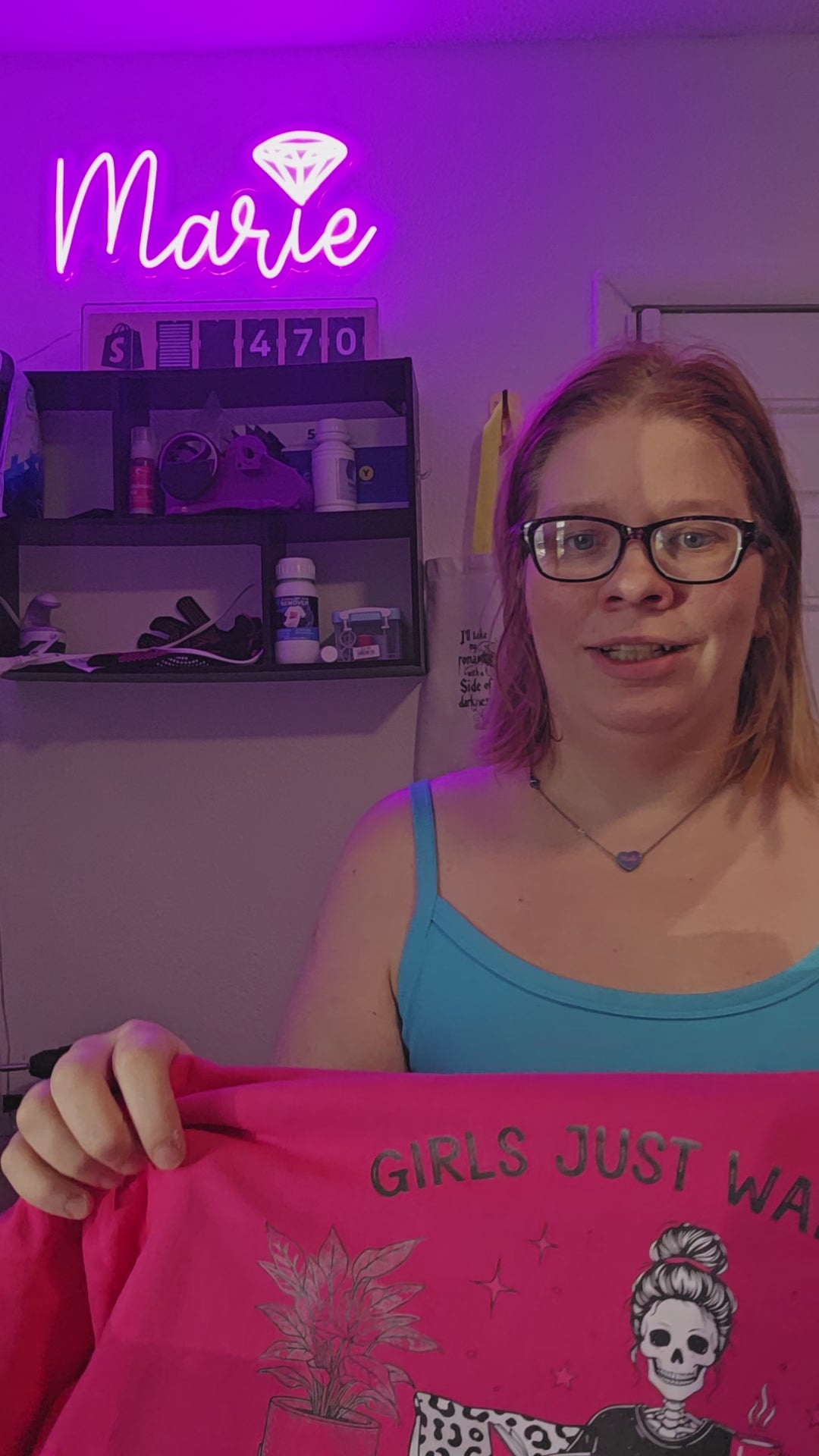 Precision Design: Featuring the "Girls Just Wanna Stay Home" graphic, professionally crafted with the Marie Gems attention to detail.