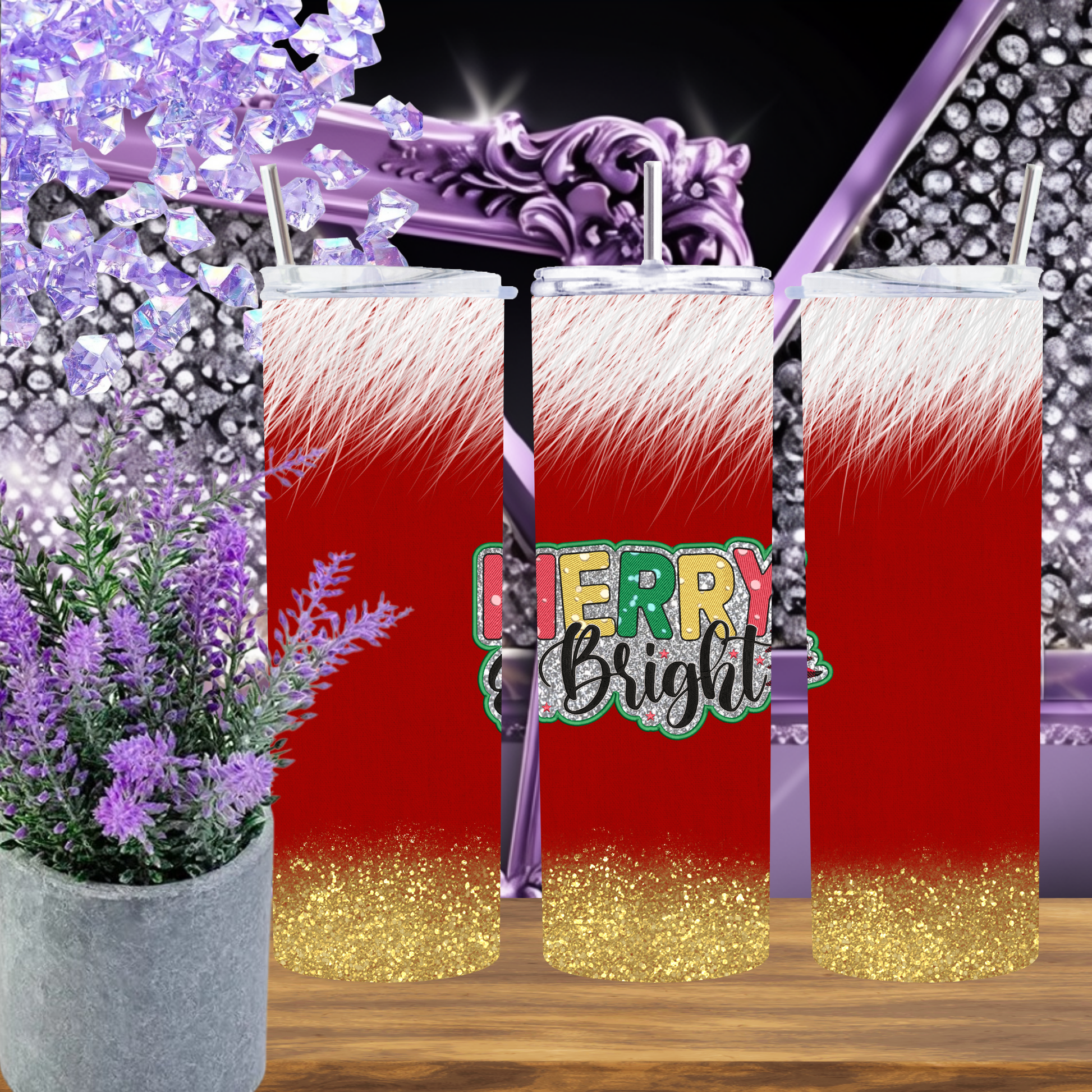 Stay merry, bright, and extra festive with this 20 oz holiday tumbler featuring a bold red base, snowy faux fur trim, gold glitter bottom, and “Merry & Bright” lettering with a touch of sparkle! It’s the perfect balance of cozy and glam — a total must-have for the holiday season.