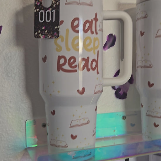 40oz Mega (With Handle): The ultimate hydration partner. Features a sturdy handle for easy carrying and includes a lid and straw for effortless sipping all day long.