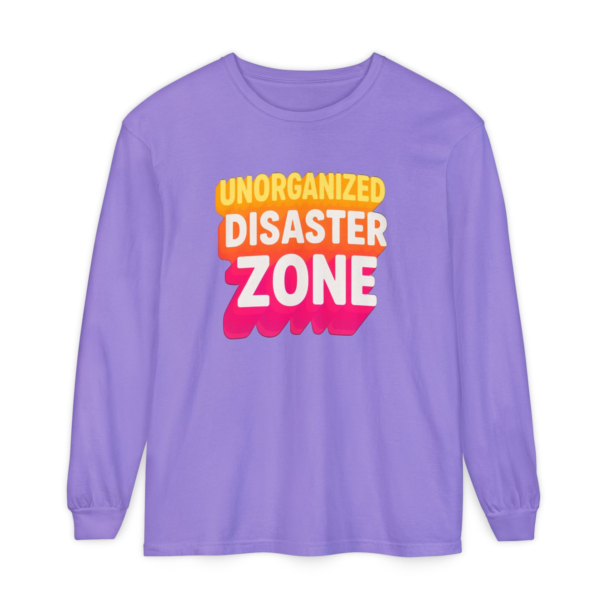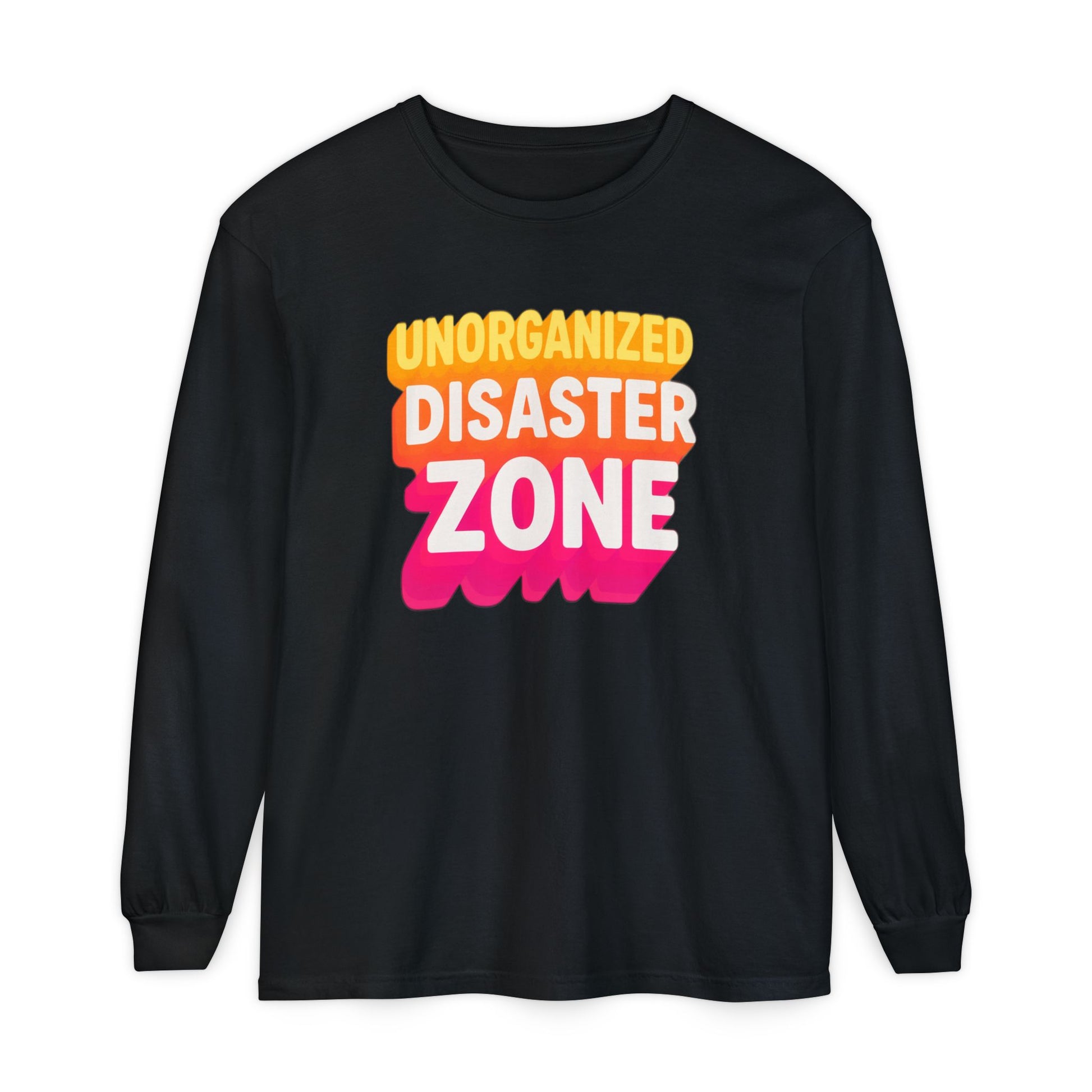 Unorganized Disaster Zone Long Sleeve Tee | Funny Graphic T-Shirt, Casual Wear, Gift for Friends, Comfortable and Trendy